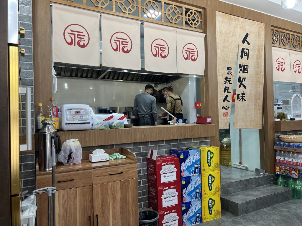 双凤羊肉面重烹肉、善熬汤、精制面。苏州人吃面先吃汤,这个汤头不行,这面就已经打了折扣了。买了店里销量比较好的双浇面,羊肉+羊肚,就去厨房门口看师傅下面,看到师傅不紧不慢的下面,切浇头,感觉全然没有市区面馆那种热乎劲,慢吞吞的,或许这个面和其他的面馆不同,需要慢煮。完全没有老师傅那种下面、搅拌、加凉水、搅拌;滚上一滚;长竹筷捞进爪篱控一下水,放到碗里成鲫鱼背那种一气呵成的感觉。