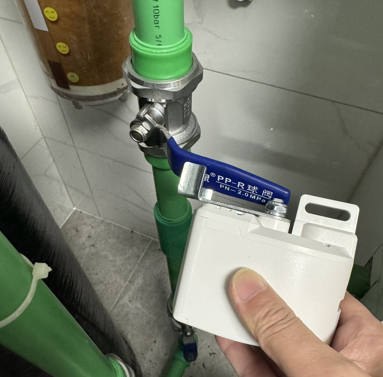 先按住push开关,测试了下阀门,再通过APP上进行开关测试,然后开始安装。