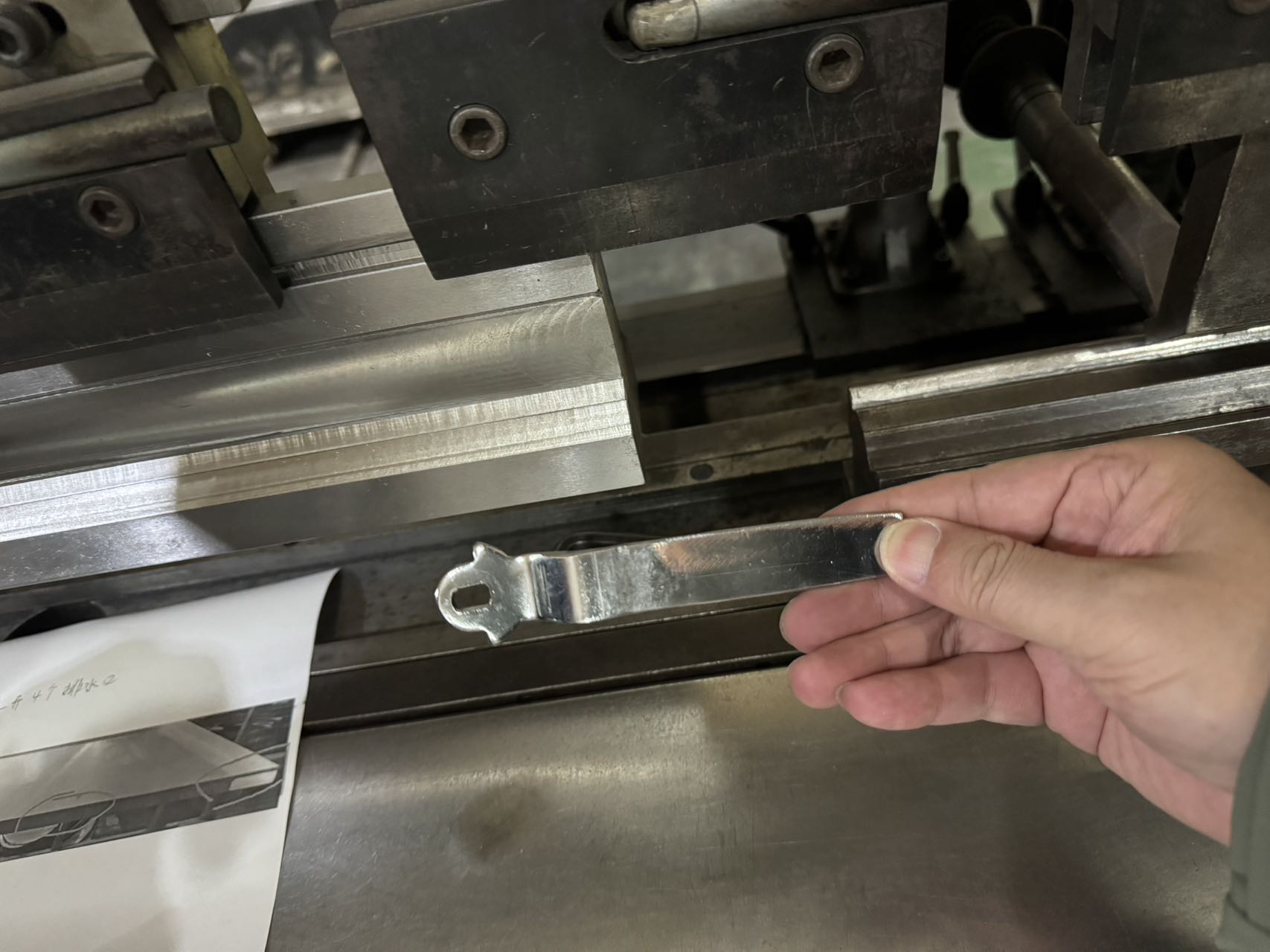 发现这个机械臂卡的开口比我的阀门开关柄窄不少,这个就尴尬了。没办法,理科生转弯快,棘轮扳手拆手柄,还好还好,今天工厂工人在上班,不过作图的工程师休息,不然直接激光切一个出来。那只有笨办法了,拆下的手柄敲直,砂轮机上打一下,然后上折弯机重新弯一下,OK,阔以了,回家继续安装。