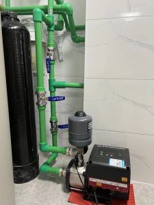 安装好了是这个样子,两个球阀常开,另外一个常闭,这是维修回路,万一泵出故障,那么把常开的两个变关闭,长关的打开,就屏蔽增压泵了,一般不熟悉的人,水路设计的话,基本上不会给你做这么一个回路的。