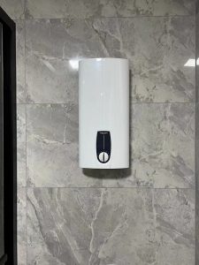 确认安装完成后,进行调试,压力直接上到3公斤,电机开始启动,声音几乎听不到,就是丝丝的声音,启动、关闭都是微乎其微的滋一下,压力到了后就自动停止运转。跑三楼卫生间,开启淋浴热水,水流明显大了起来。但个人觉得不是很满意,压力又调到4公斤,这会儿,热水全开,边上的快速电热水器发出水流共振的声音了。就下图的热水器,大概比A4纸长点,一般开热水,就是几秒就出。