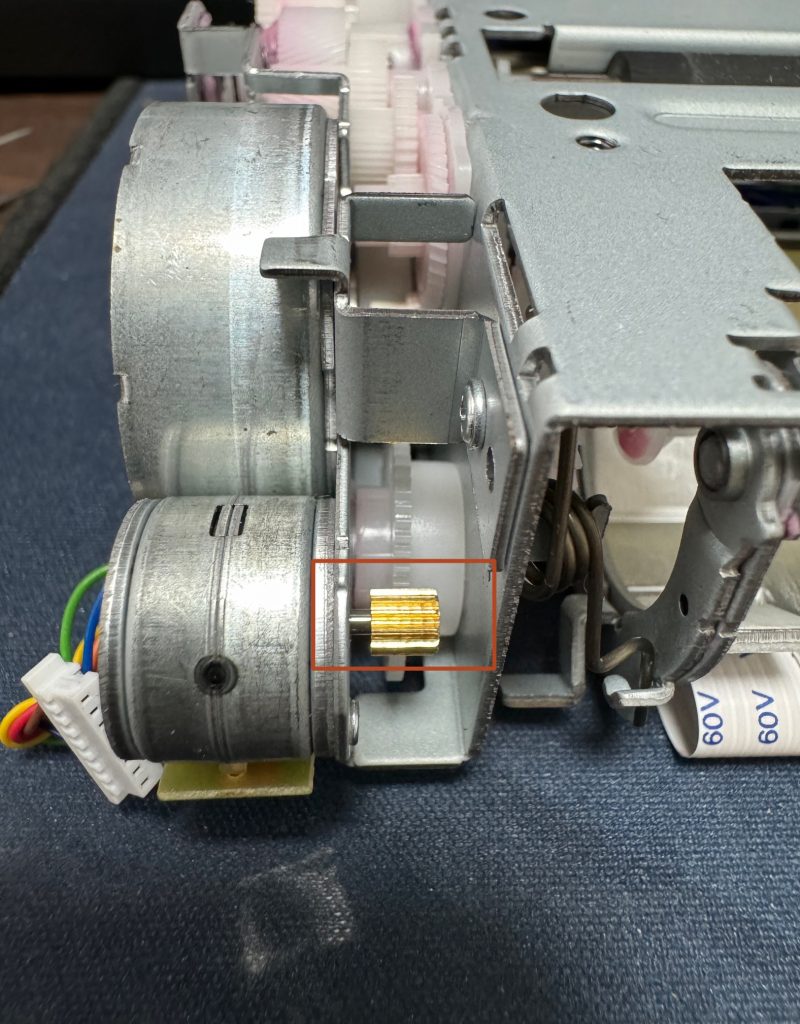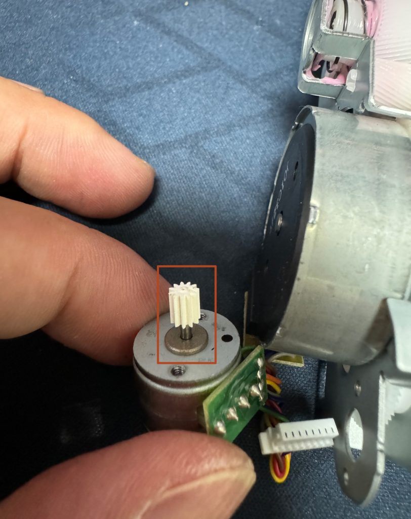 就是这个白色的塑料齿轮,我看了下,应该还没开裂,是打滑了。