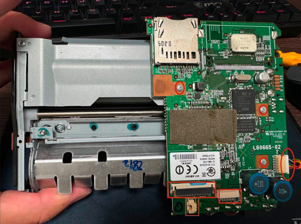 这里要拆三个主板螺丝,两组电源插头,以及两个排线,比较宽的那个排线,需要把白色挡板松开,其他的都是直接插拔,注意力度就行。