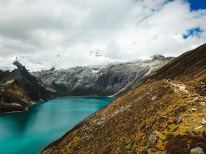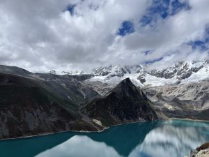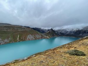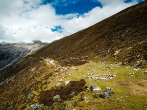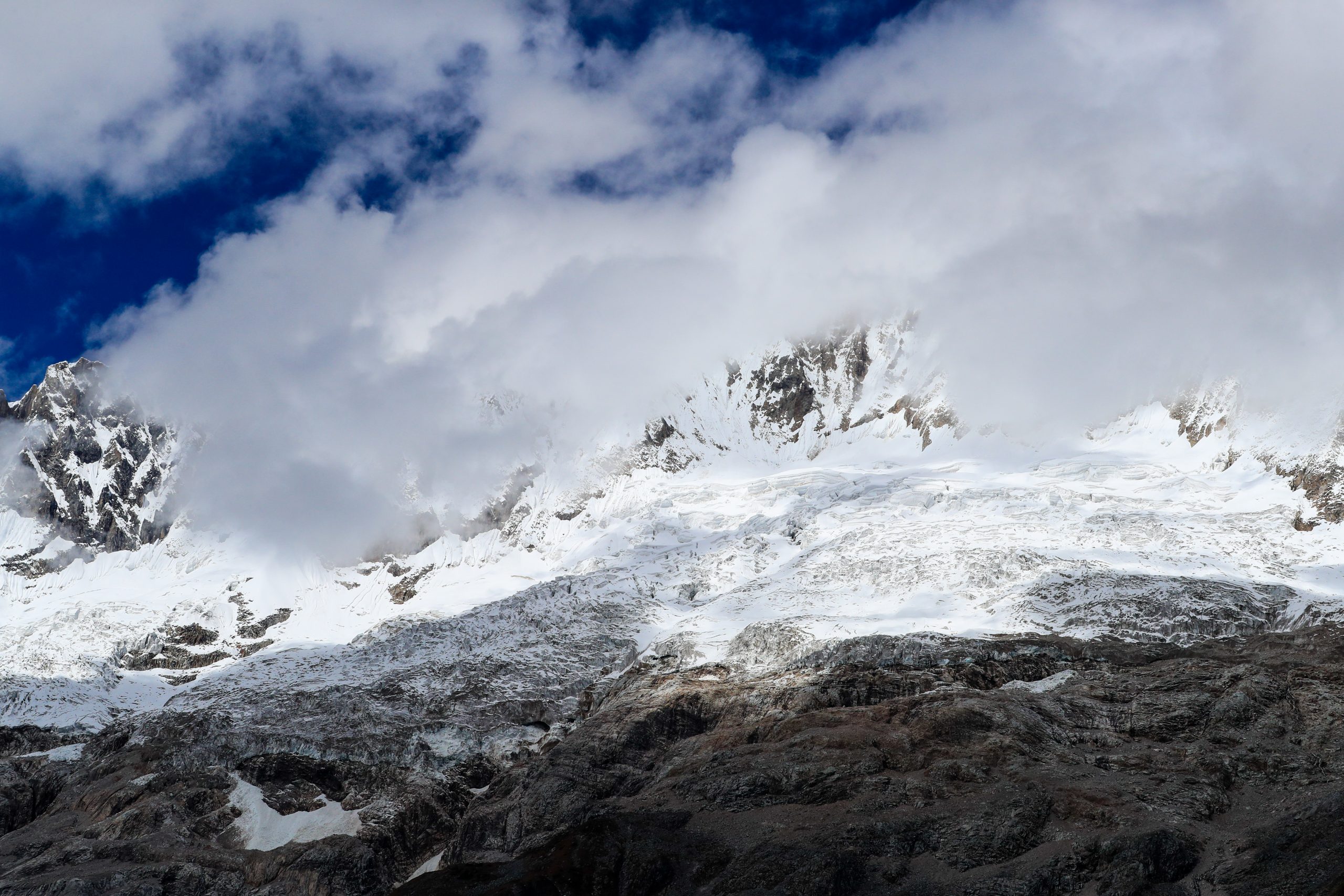 走向雪山脚下的路上,多次听到雪崩的声音,让人心里有点发虚,但看到山脚下的户外帐篷,觉得还是比较安全的,毕竟看着近,距离还是很远的。在湖底雪山脚下,我们碰到了帐篷里露营的徒步爱好者,从他们那里要了几支高渗葡萄糖、一点热水,给同伴喝了下去。这时候,开始变天了,突然就是起风,随后就下雨,冷冷的冰雨就这么浇下来了。本来想从对面的山绕回去,但是藏民告诉我们,那里的路更加不好走。当机立断,原路返回。