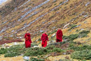 吃完面条,稍微整理下,我们就轻装出发,进行第一条线路的徒步,今天走白玛林错,要到莲花生大师修行的地方,爬升大概800米左右,全程在海拔4600米上行走。(下图中间的红线,白玛措)白玛琳措的尽头,是莲花生大师修行地,过拉卡日雪峰(海拔6450米)的下方。
