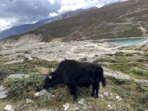 没想到,同伴服用了高糖后,体能恢复了不少,返回的路上,倒是我们几个走的最慢,冷风冷雨的铺面而来,一个同伴冷的瑟瑟发抖,我心里也在慌,不能停,这会失温的,在高原上失温可不是好玩的。一路上催促,一路聊天,有衣服加上去。最终回到家庭旅馆的时候,鞋子都湿了,丹珍升起来了火炉,炉膛里干牛粪烧的旺旺的,赶紧脱下鞋子、湿衣服烤火。大家总算有惊无险的都回到了旅馆,虽然筋疲力尽,也有担忧,总算都平安,也完成了今天预定的行程。