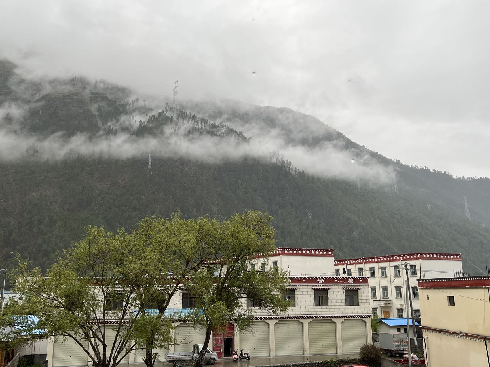 早上起来,外面滴滴答答的雨声,拉开窗帘,对面山上云雾缭绕,推开窗户,外面空气清新,环境很是不错,就是比较冷,只有4度。昨夜一夜没怎么睡着,拉肚子,水泻。感觉整个人状态都不好了。想起来车里还有之前没吃完的可乐必妥,赶紧翻出来吃了一颗,希望今天能好转。草草的吃了早饭,就出发了林芝了。