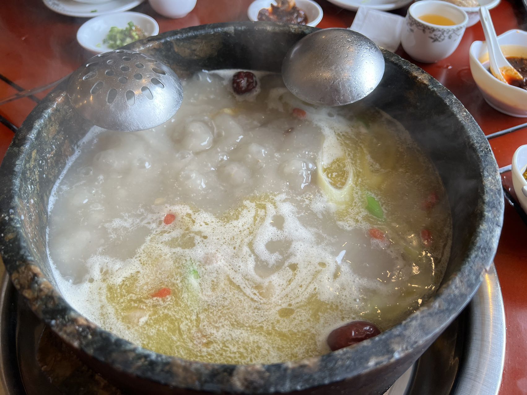 雨天路滑,车速也提不起来,去往林芝的道路虽然比之前的路宽了点,但是路上坑坑洼洼也多,沿着帕隆藏布江一路蜿蜒上去,很快到了原来的通麦天险,现在是通麦大桥到达排龙门巴民族乡,这里是通往雅鲁藏布大峡谷的重要入口。没有通麦大桥之前,这江里的汽车零件都可以装配好多辆车了。又过了几个隧道,很快就到了鲁朗镇,这个以石锅鸡著名的小镇,也确实到处是石锅鸡的牌子,小镇不大,就类似内地的一个游客中心,都是藏式民居,经营石锅鸡为主。中午在鲁朗镇上品尝了鲁朗石锅鸡,确实鸡汤鲜美,里边还有手掌参、山药、红枣等配料。只是这锅鸡并不便宜,估计在外面,同样的配料,我们也能熬出这个鸡汤。