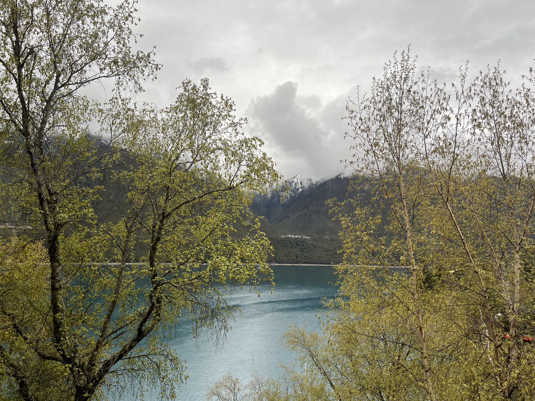 从林芝出来往拉萨去,就是有名的林拉公路,其实就是林拉高速公路,只不过西藏的高速公路就没有几条,而且不收费,没有收费站那种出入闸口。路况比较好,和内地的高速也没啥区别,唯一的也就是路两旁高山和雪山,及偶尔出现的藏民居村落,当然,高速上是不会出现牦牛占道的。沿着拉林高速走了一个多小时,就是路牌巴松措了,拐上去巴松措的道路,就是一个区间限速,虽然是两车道的公路,但是路况还是不错的,只是限速,让我们跑的不爽。巴松措在工布江达县,高速下来就有指示牌,其中直开是巴松措,往右拐是去碉楼群。