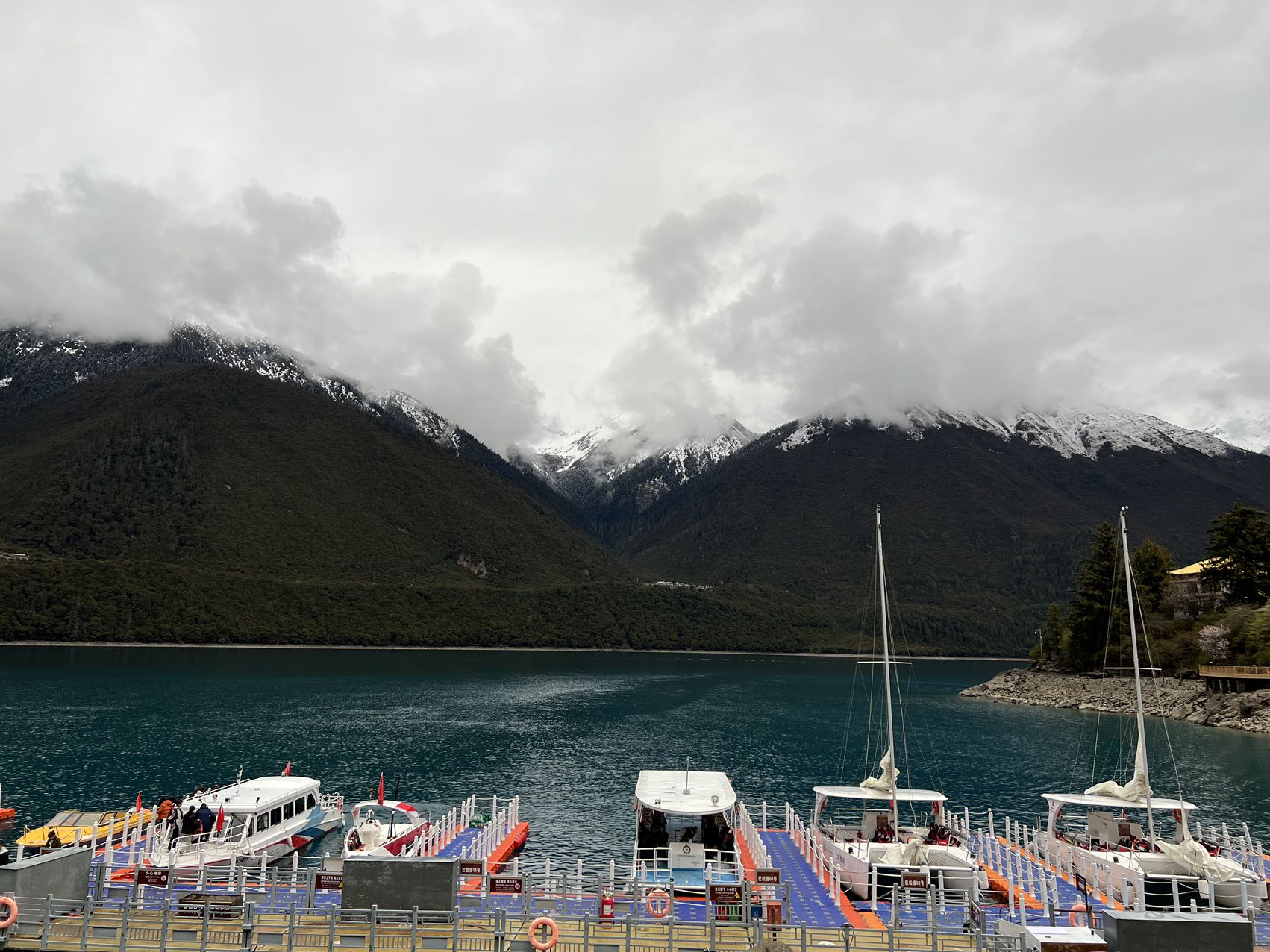 返回观光车,又是20多分钟的车程,返回到湖心岛,这里禁止飞无人机,因此我也就作罢,拍拍照,没有进去参观,就在外围走了走。湖里修了游船马头,有帆船、快艇、游船,藏民们虔诚的去湖心岛上参拜。