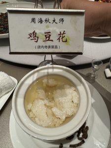 晚上老彭安排了个特色菜请我品尝,还让黄司令过来作陪,当然,少不了中午偶遇的王处。我们品尝了几个经典名菜,宫保鸡丁、鸡豆花,味道很是独特,让人回味。