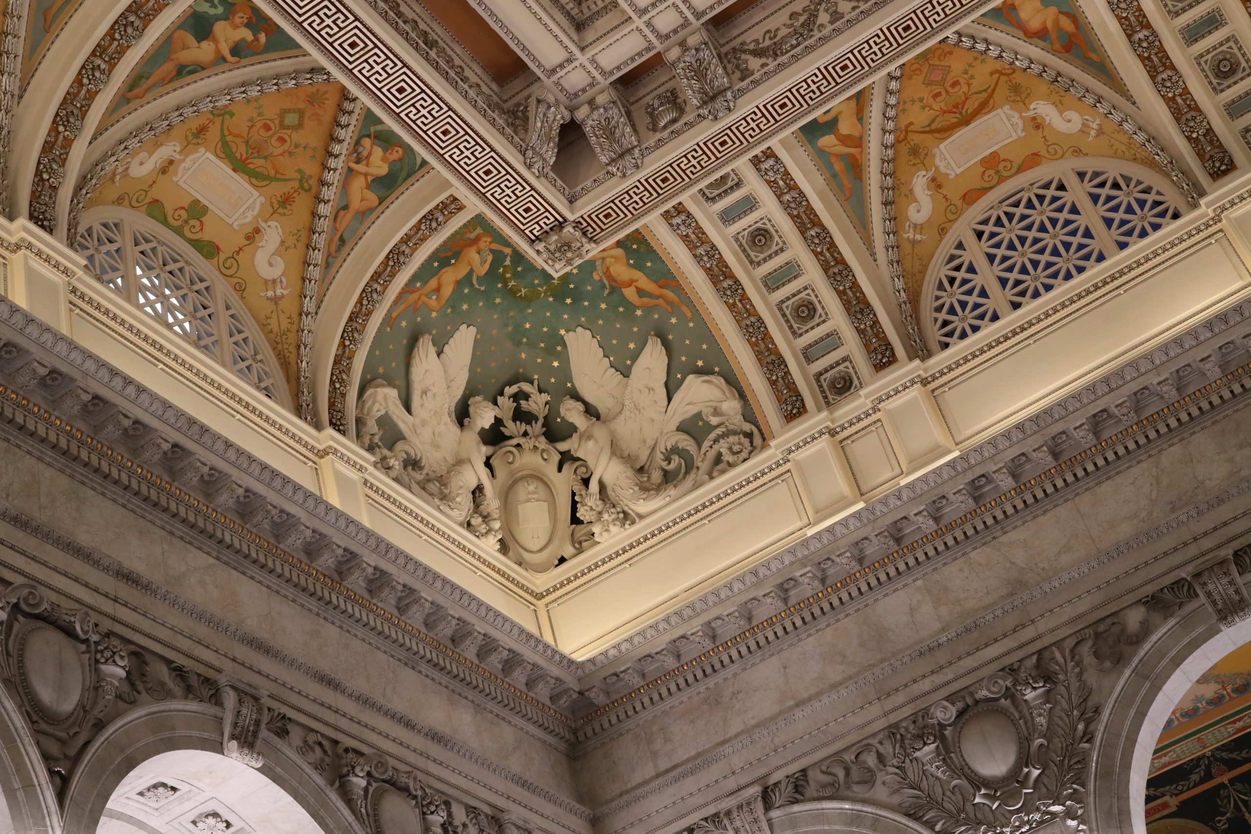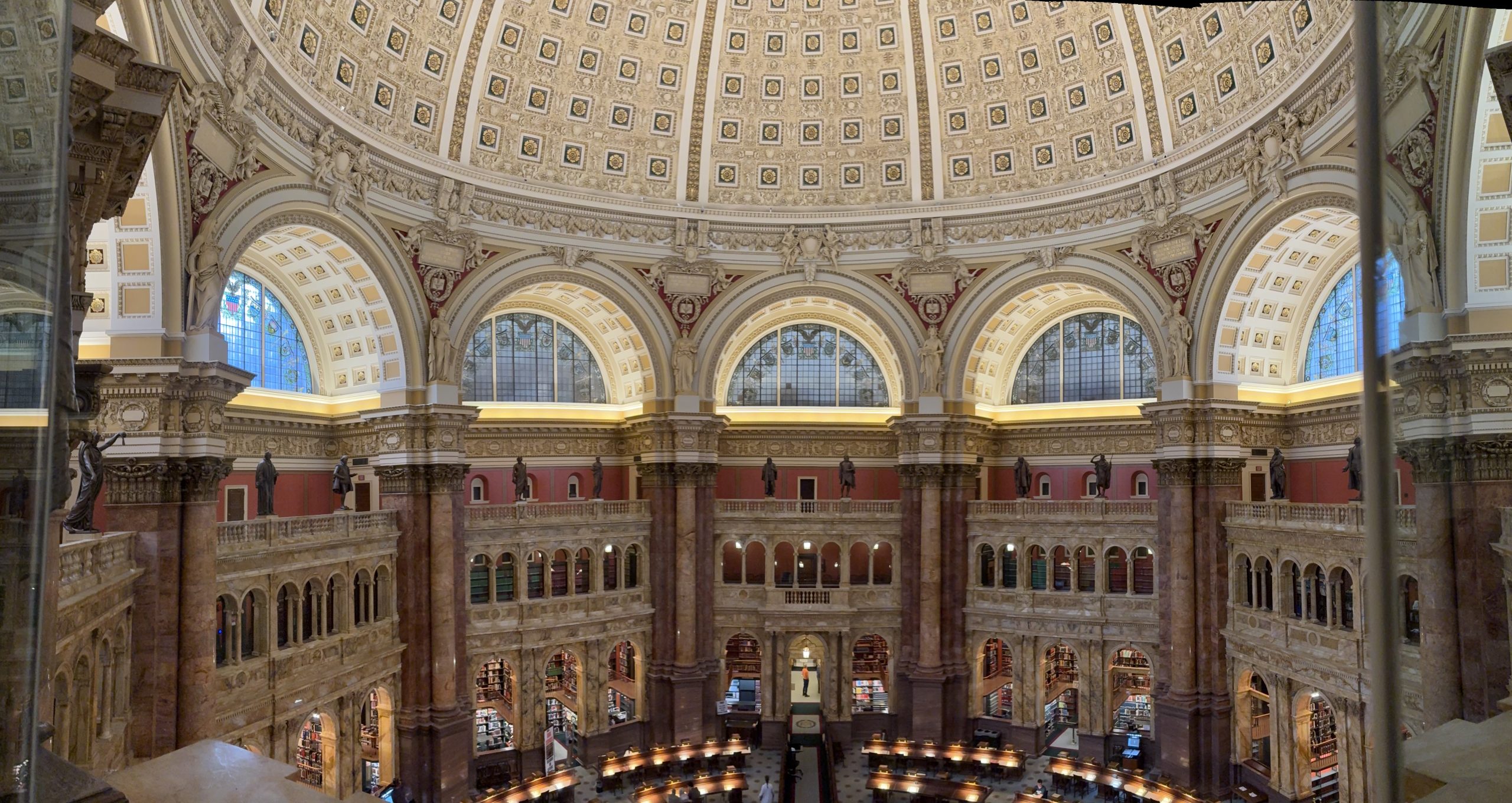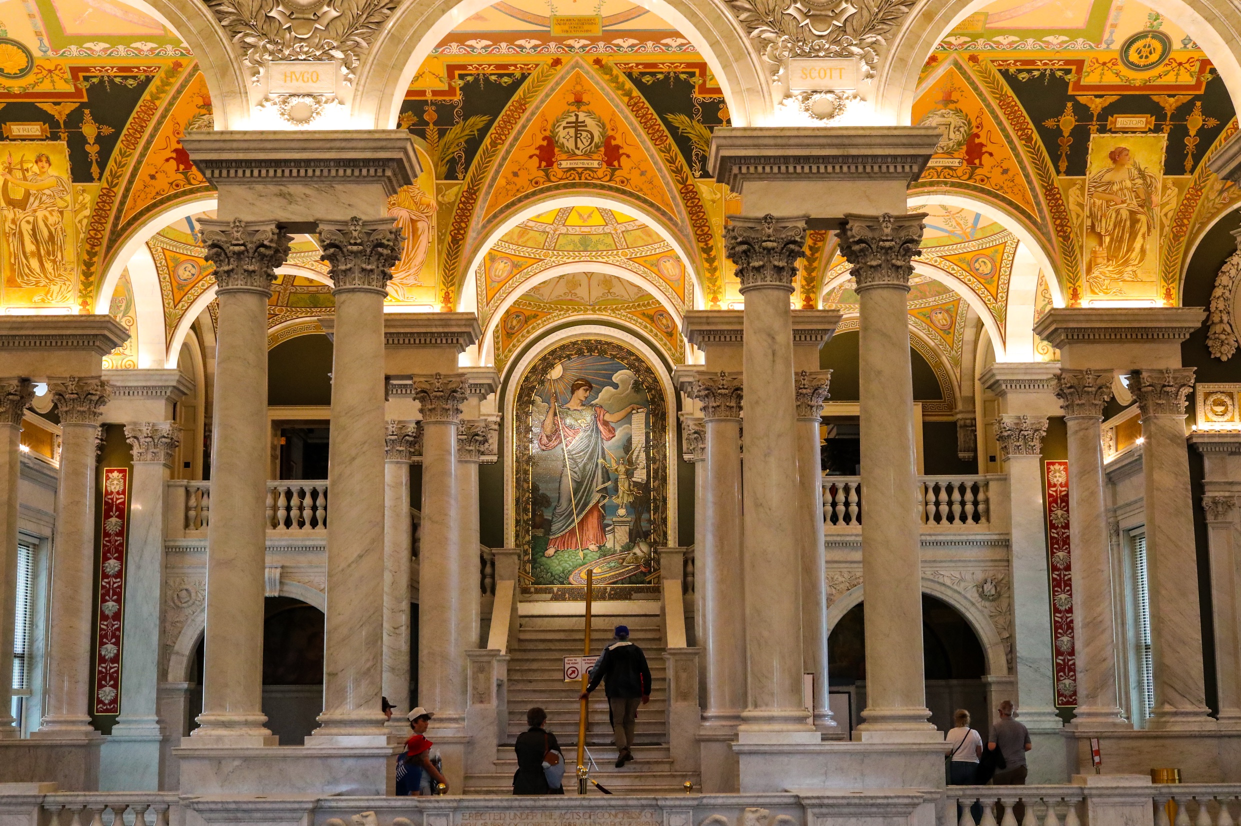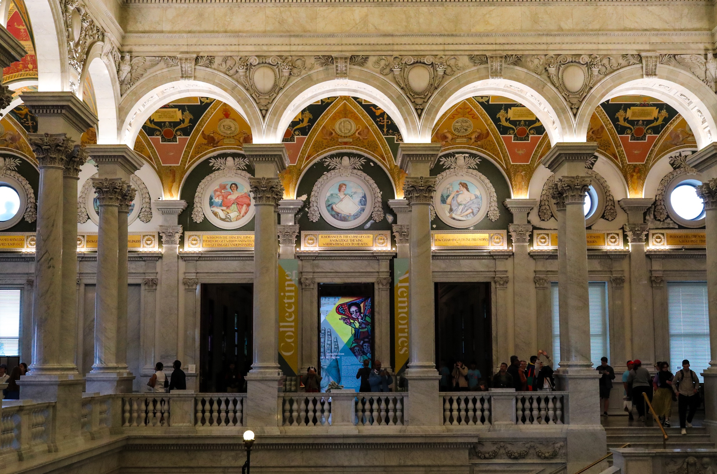 喝完咖啡,雨也小了点了,我们走过国会去看看,发现队伍还是老长,算了,先去国会图书馆吧。美国国会图书馆建于1800年,设立在华盛顿国会山,是世界上最大的图书馆之一。已经成为世界上最大的知识宝库,是美国知识与民主的重要象征,在美国文化中占有重要地位。图书馆以1亿2800万册的馆藏量成为图书馆历史上的巨无霸。根据中文部的统计,到2015年为止,它共藏有中国古代的善本书籍5万多册。其中,有一卷叫《一切如来》的书,是公元975年北宋早期佛经的木版印刷品。美国国会图书馆的中文部还拥有4000多种共6万余册的中国地方志,其中的100多种是中国国内的孤本;关于中国少数民族的文字资料,该部也收有200多种藏文木版印刷品,400多种满文资料和3000种云南纳西族东巴文资料。感觉我们自己国家的图书馆收集的中文资料也不一定有他们收集的资料全。