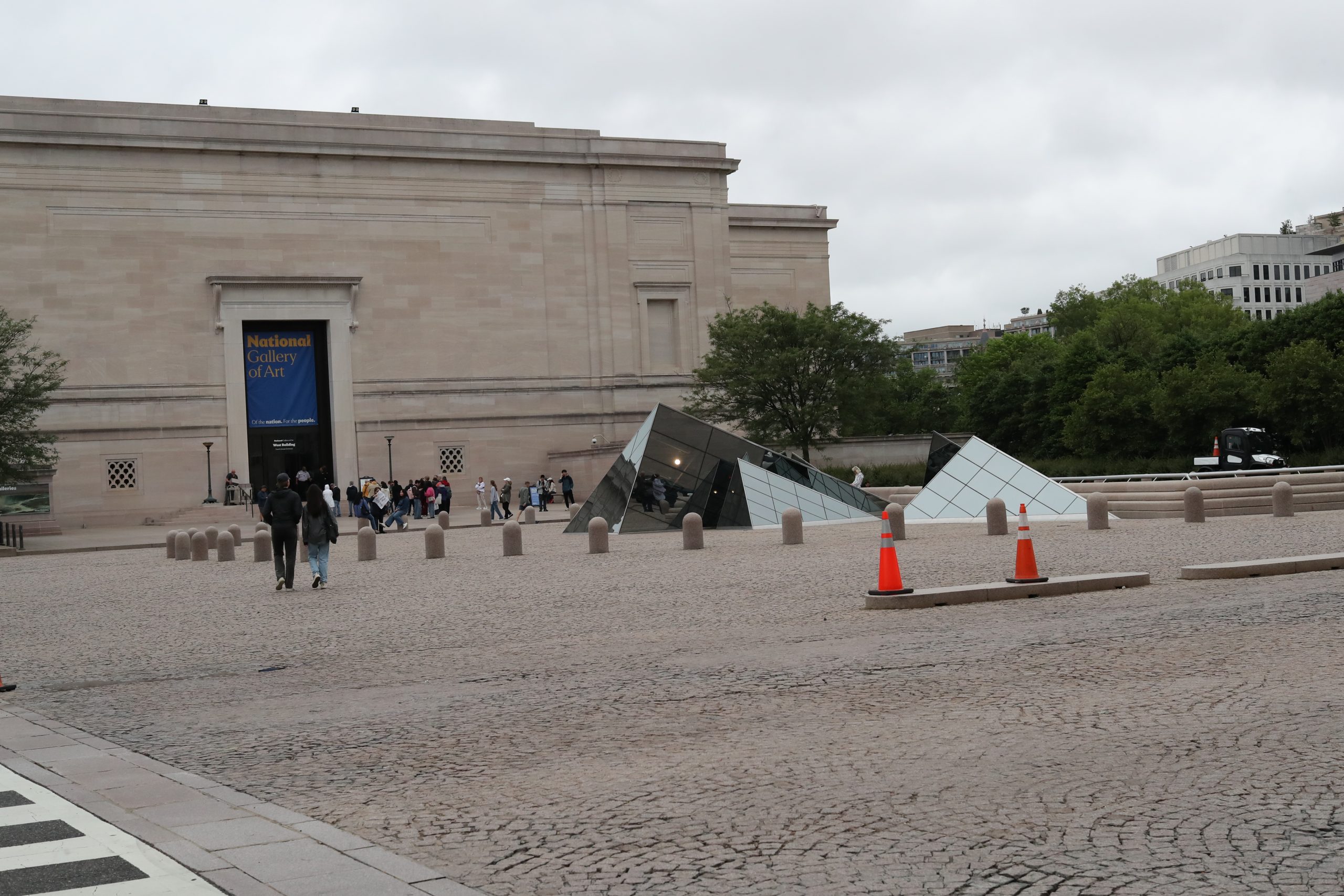 参观完商学院,我们一起去去国家美术馆参观。走到美术馆前面,看到地上几个玻璃顶,瞬间想起,第一次看到这个玻璃尖顶应该是30多年前,在寺前伯伯家的一本《人民画报》杂志上见到的。