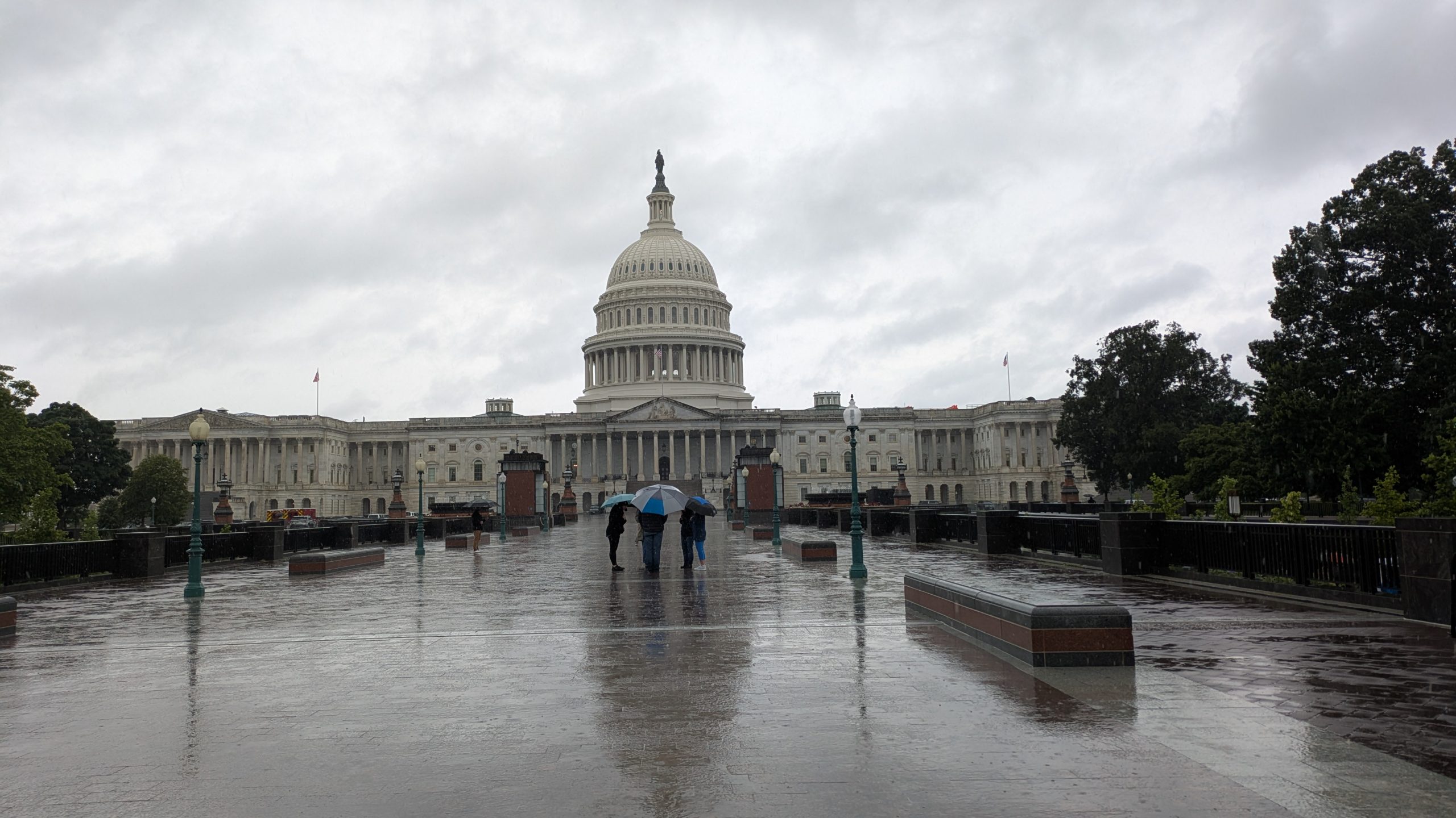 第五天,开启华盛顿特区闲逛模式。来了美东,就要去下DC,类似于到了北京要去下天安门广场一样。话说,这DC国会大厦、白宫不就是人家老米心中的天安门和中南海么。虽然国会是预约了的,但是今天早上开始就下雨,等我们走到国会大厦前面才只是8点过点,居然今天还有学生排队参观,队伍排老长了。以为我们有预约,可以快速的进场,结果,还是要在后面排队。天啊,这队伍一动不动,排了一会儿,这雨越下越起劲,也真佩服这些高高大大带着婴儿肥的小学生们,他们好多人可是淋着雨,甚至还直接坐在地上等。排了半小时多,这雨一点没有要停的意思,即使撑了伞,衣服都快全打湿了。干脆放弃了参观国会大厦,就在外面拍拍照吧。