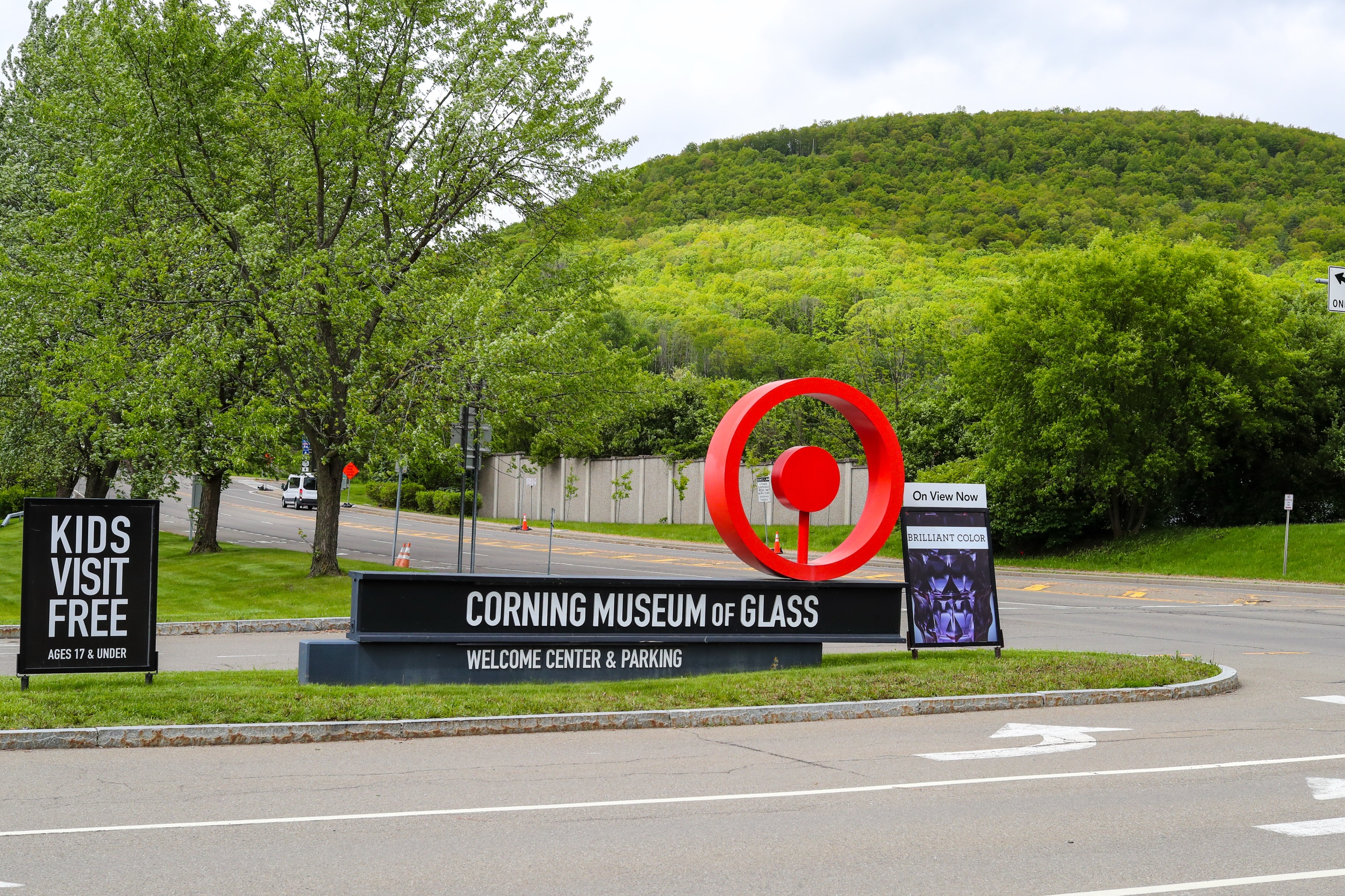 第八天(5月24号)从地图上看,今天直接到伊萨卡的路程也不是那么远,三四个小时也能到了。可是,这几天是康奈尔大学的毕业典礼季,在伊萨卡的酒店全部爆满,由于订不到伊萨卡的酒店,就去了距离伊萨卡一小时车程的康宁小镇。这个康宁,对,就是康宁玻璃的那个康宁,相信大家应该都有印象。是美国的玻璃之都,世界上最大玻璃制品所在地,corning是玉米地的意思,现在成了玻璃的代名词。这个位于纽约州北的小镇出产的玻璃制品和中国景德镇的瓷器一样,享誉世界。厨房里用的康宁锅、手机上用的防刮耐磨玻璃、光纤通信的光缆等等。