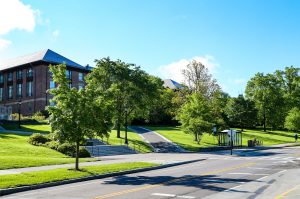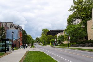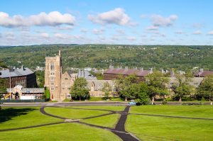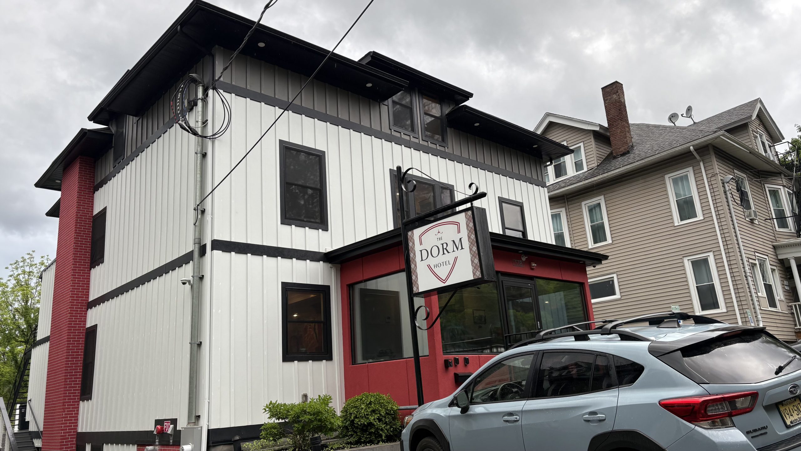 第九、十天(5月25号),今天开车比较轻松,从康宁出发,走13号公路经埃尔迈拉、卡尤塔,一个多小时就到女儿学校所在地伊萨卡镇了。由于暂时没有住的房间,定了个旅馆。旅馆名字就叫Dorm,中文意思是宿舍,康奈尔校园就在这个宿舍的东北角,距离也就几百米。