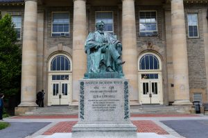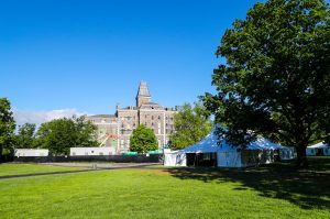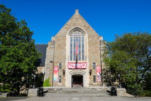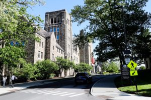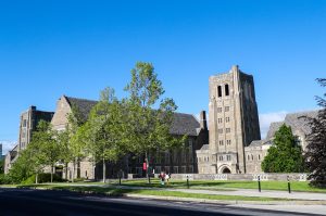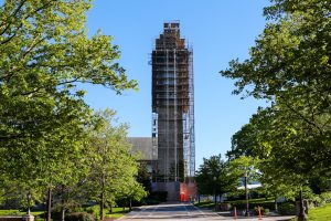 下午女儿带我们去了学校转转,风景真不错,但是拍照并不好看,因为天气有点阴,看天气预报明天会天好,准备明天早上早点起来逛逛校园。校园里到处是穿了毕业礼服的学生和家长在拍照,我们去了学校的纪念品商店,还有图书馆、自习室等处,可惜,学校的标志性钟楼在维修,外面围了脚手架,留下点遗憾。