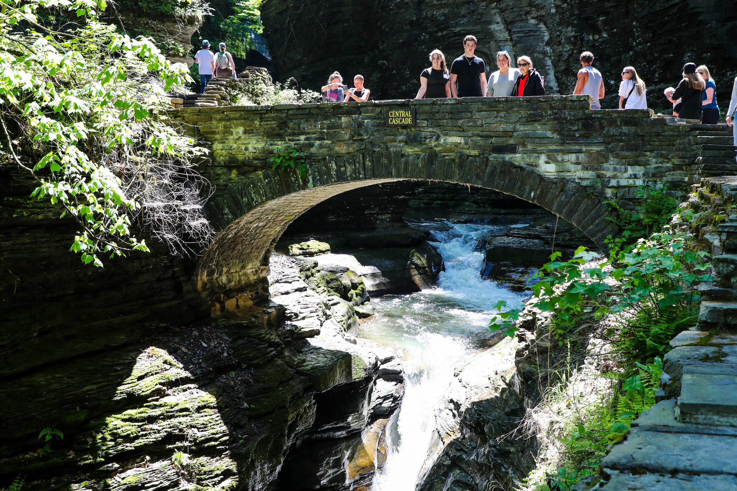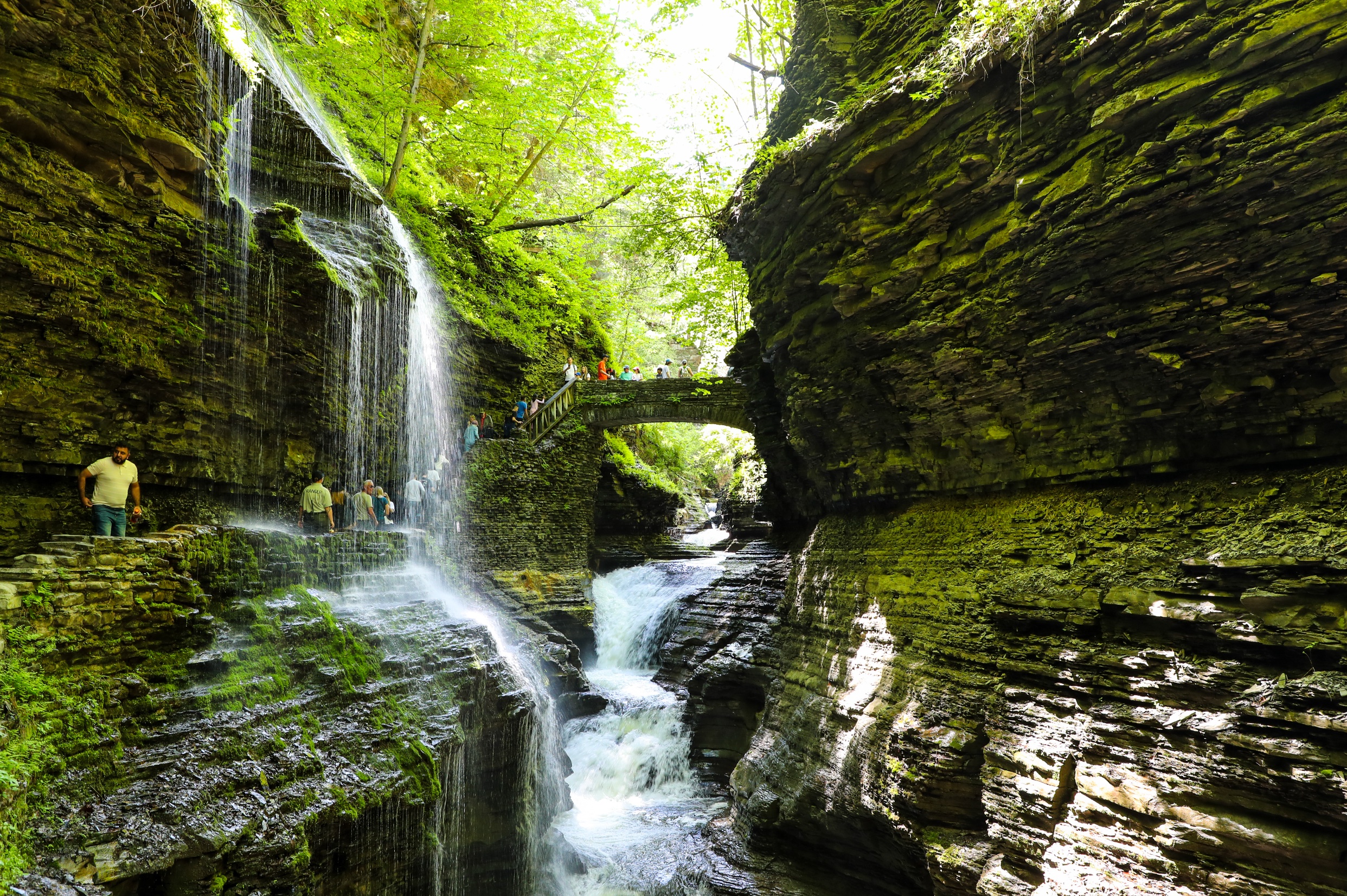 下午没啥事情,女儿想睡觉,我们就开车去五指湖风景区的瓦特金斯格伦州立公园watkins glen state park,徒步加看瀑布。去公园的路上,如油画般的漂亮,大片的绿地,连绵不绝的山脉,几乎和微软的开机桌面差不多,感叹美国耕地资源真的是多。