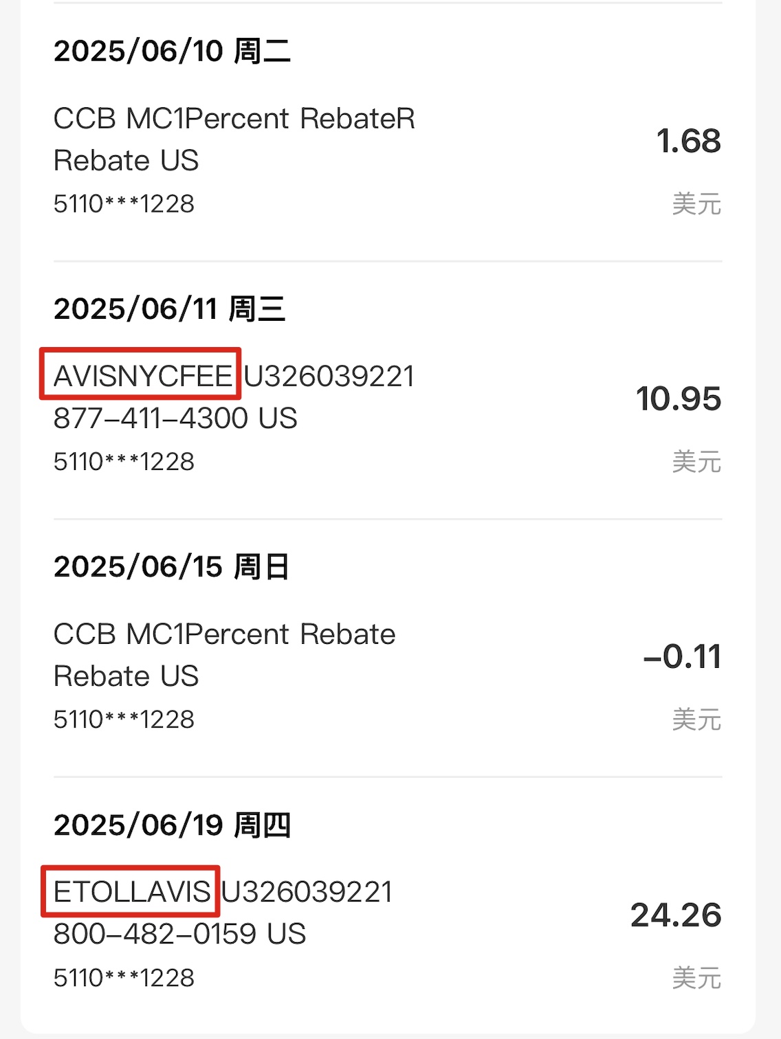 一般在美国租车的话,基本上不会出现这几天在知乎和其他平台爆出来的,什么在冰岛租车被收了14万的赔偿这种事情的。在美国租车,取车和还车都比较大大咧咧,没有那么多弯弯绕。基本上去车行,带上预定单,出示护照、驾照+翻译件(或香港驾照、国际驾照)、信用卡,登记一下,会询问你是否购买了保险、是否需要租用ETOLL(美国的公路电子收费,相当于国内的ETC),然后带你去看车,一起check,顺便交车,告诉你满油取车,满油还车。还车的时候,是走带防逆行地钉的专用通道,只进不出。收车人员也就简单外围看看,点火看看是否正常,再看看油量,检查有没有遗留物品,就让你走人了,整个过程也就几分钟。如果碰到没交的过路费过桥费停车费啥的,一般会过个10天半个月的在你信用卡中扣除,但你也可以去https://www.e-zpassny.com/这个网站,通过车牌号查是否产生费用,然后提供信用卡扣款缴费,这样可以免去租车行收取服务费。看看,我手续费都被收了10.95刀。但这个网站,回国后需要科学登录,IP地址得是非国区(含HK)。一定要记得买保险、买保险、买保险重要的事情说三遍。