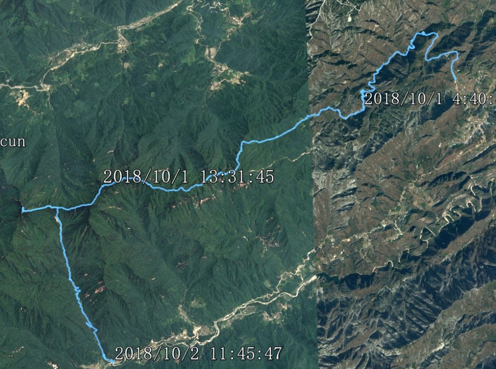 9月30日傍晚,无锡洛社集合,领队管总往我背包里扔给养,打包。一行6人(领队管总及其父母、领队的青梅竹马、我和惠山医院小李)两车,一路高速奔向大别山,位置定的是安徽六安黄尾镇磨子潭镇堆谷山村。国庆放假,高速上车很多,总体来说,还是有点堵的,一路上目睹的车祸也是不少,都是开车不走心引起的。到达堆谷山庄已经是1号凌晨三点了。停在对谷山庄门口的水泥地上休整,吃饭,山里还是比较冷的。凌晨的气温大概10度,从车上拿出自加热米饭,每人一个,吃完继续往山里去。刚启动车,胎压报警,右前轮低于2.1,只能先不管,继续我们的行程。